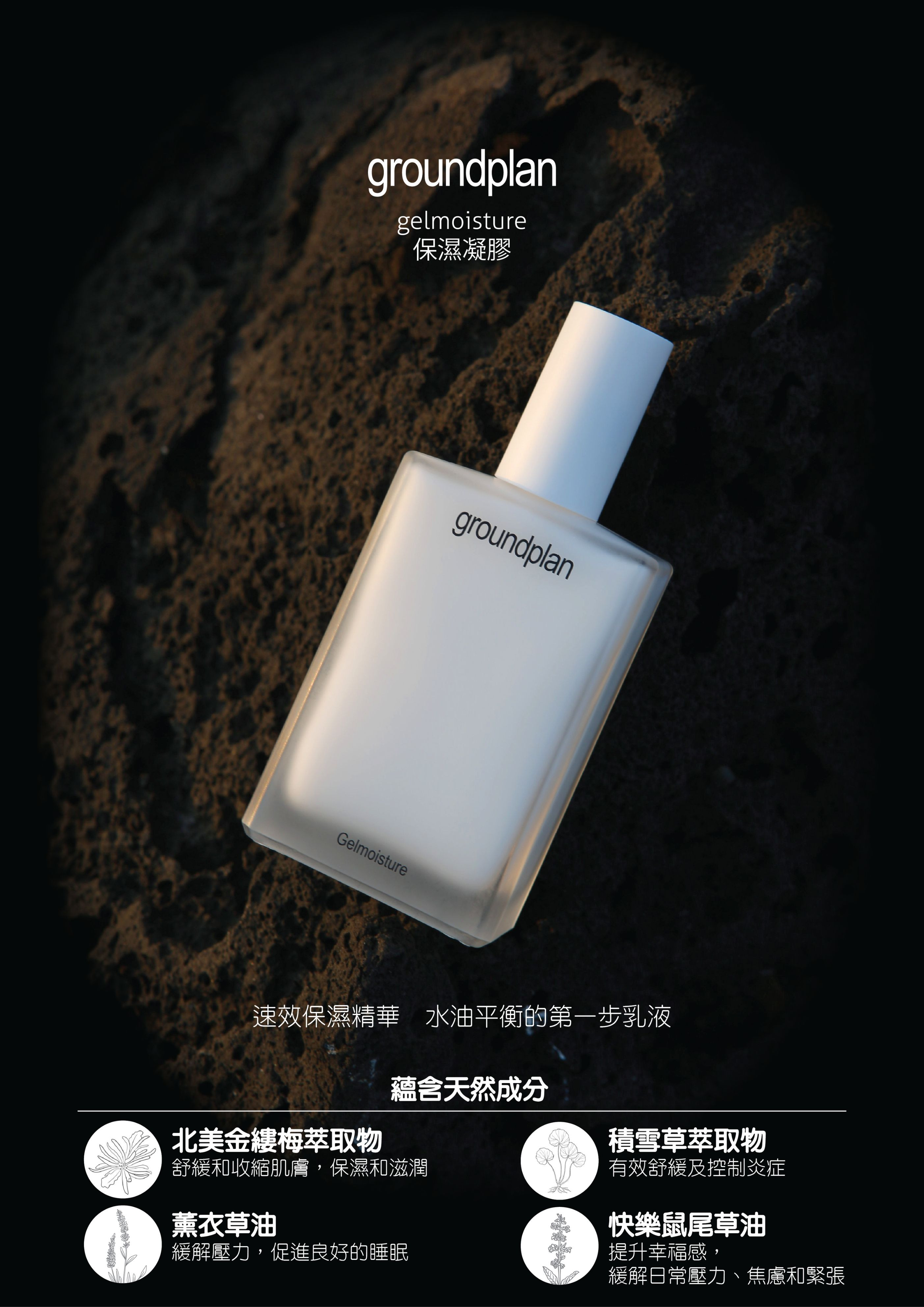 groundplan 保濕凝膠,韓國熱銷配方,透過天然植物萃取,為肌膚注入多重水分與舒緩能量。比起一般用水為主的護膚品,這支凝膠主打 85% 北美金縷梅萃取物,由內而外滋養肌膚,質地清爽、不黏膩,一抹即吸收。
