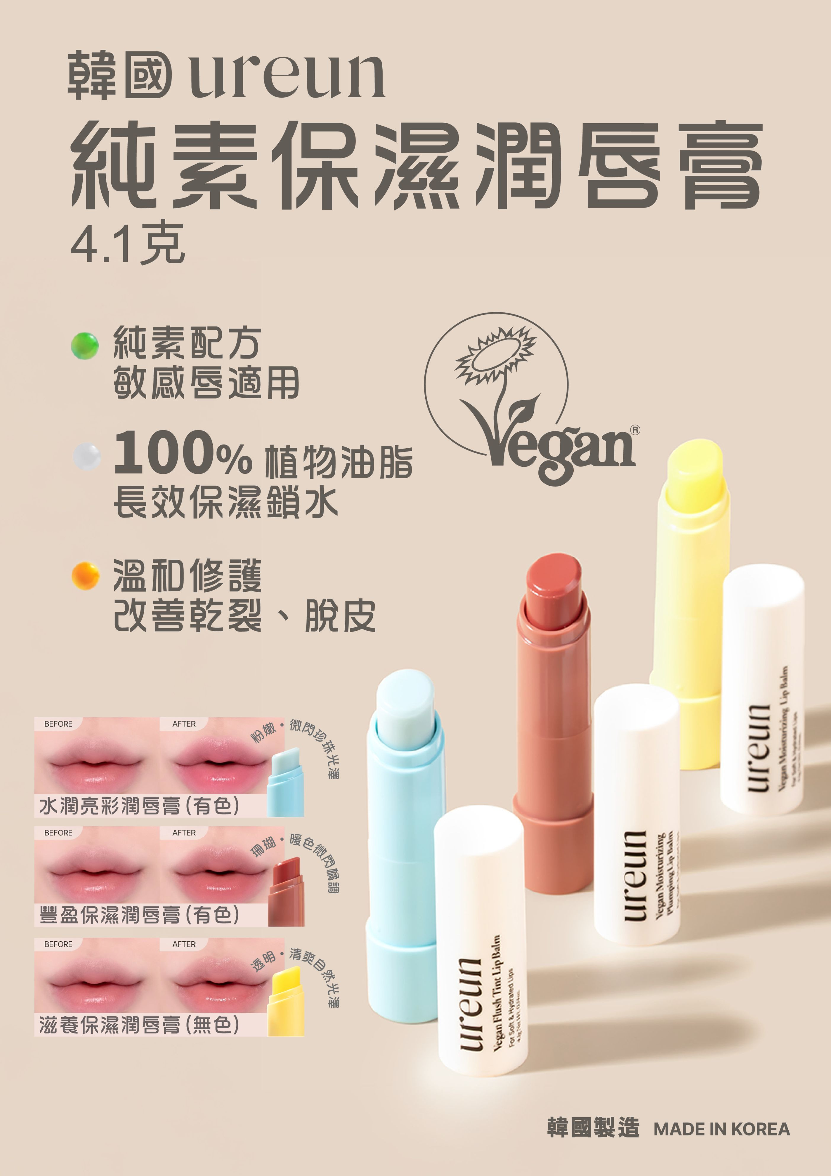 韓國ureun 純素滋養保濕潤唇膏 4.1克