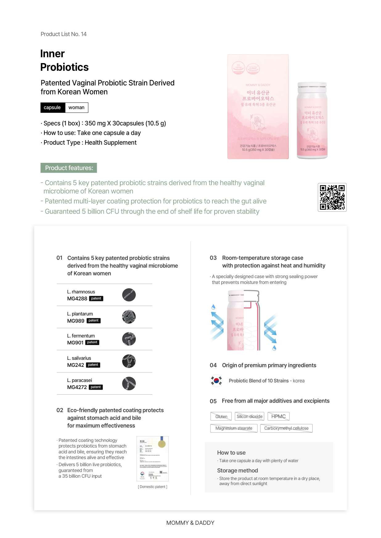 韓國MOMMY & DADDY 女士益生菌 10.5克(30粒)